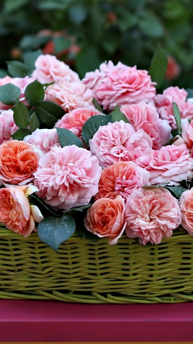 Edytor tapety: Łososiowe róże w koszyku