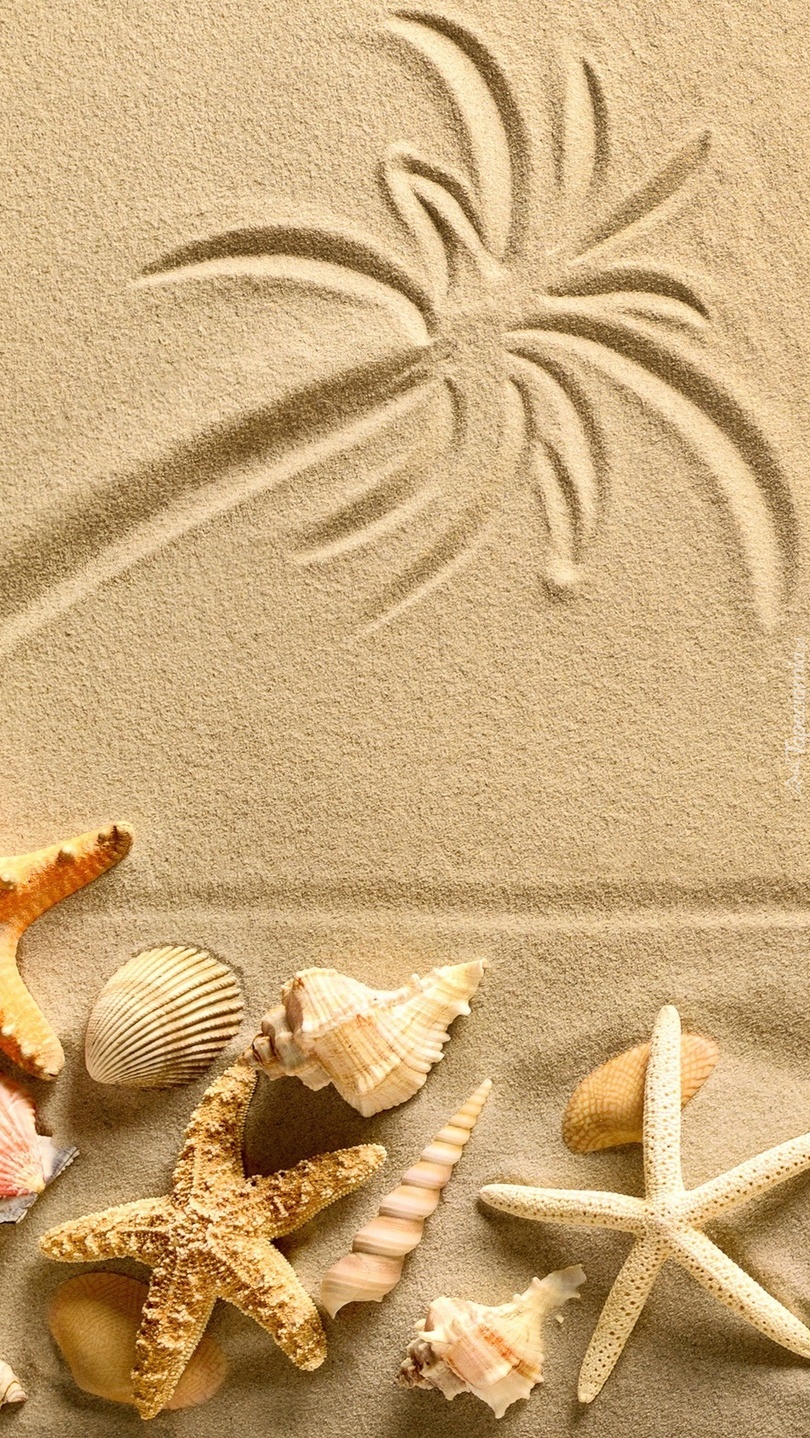 Edytor tapety: Rysunek z muszelkami na piasku