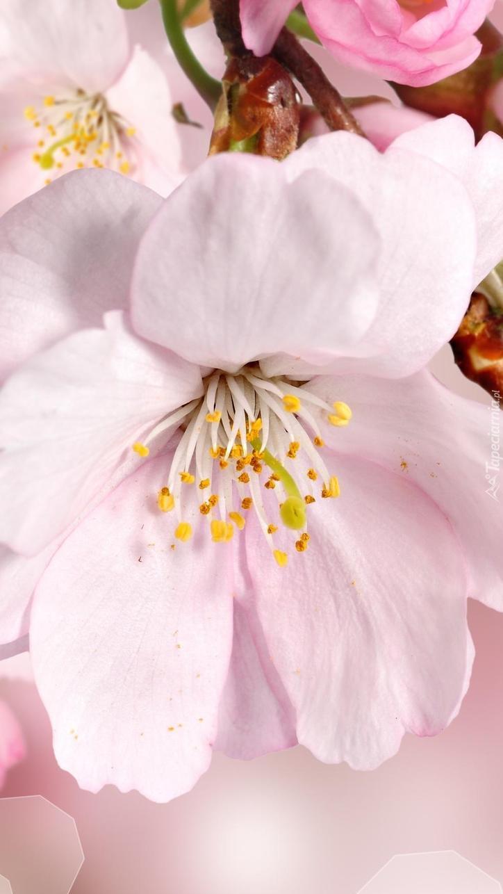Edytor tapety: Biało-różowe kwiaty drzewa owocowego