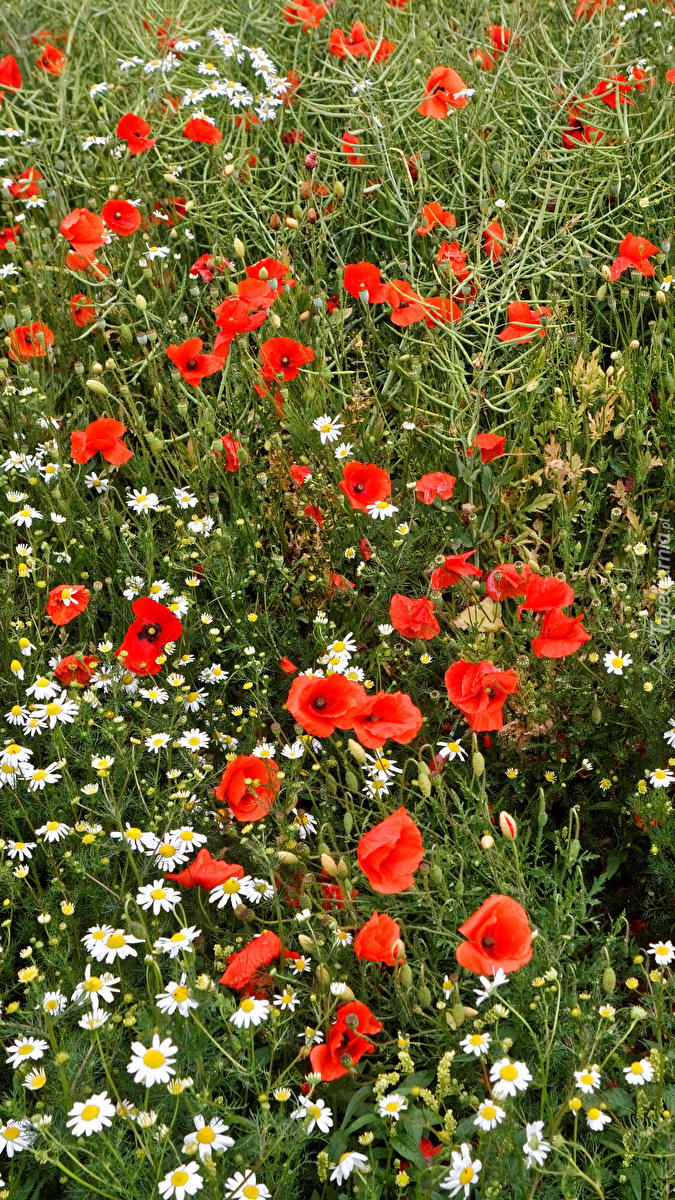 Edytor tapety: Maki i rumianki na łące
