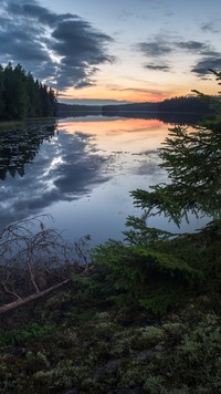 Edytor tapety: Wschód słońca nad jeziorem