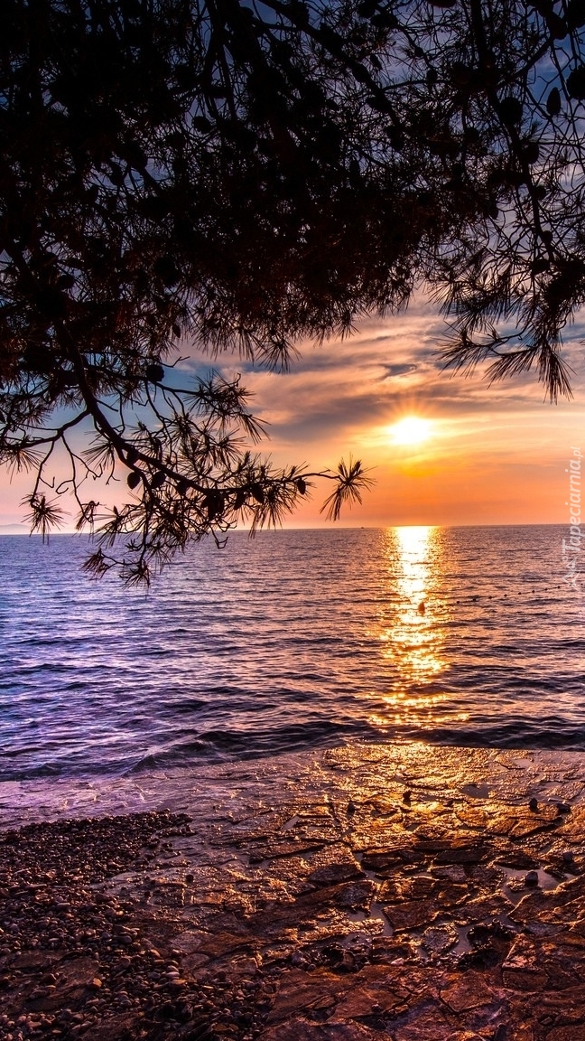 Edytor tapety: Odbicie zachodzącego słońca w jeziorze