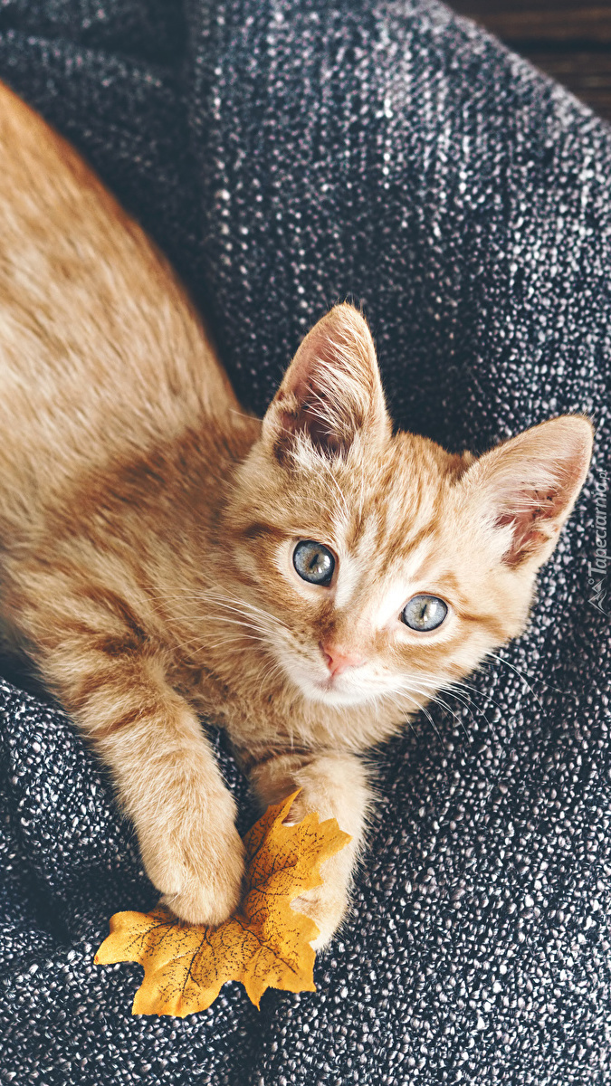 Edytor tapety: Rudy kot z listkiem