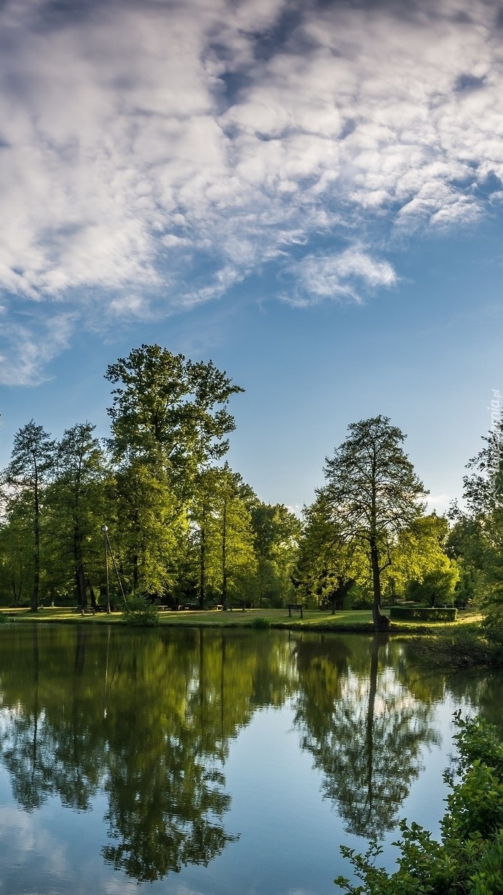 Edytor tapety: Drzewa nad jeziorem latem