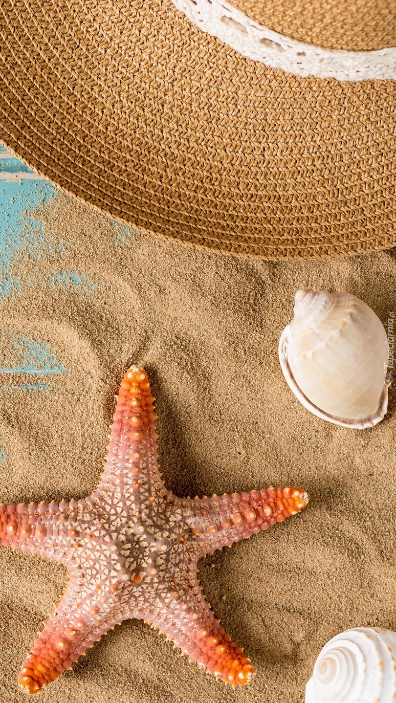 Edytor tapety: Muszelki i rozgwiazda na piasku