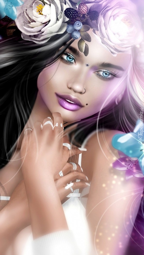 Edytor tapety: Kwiaty we włosach kobiety