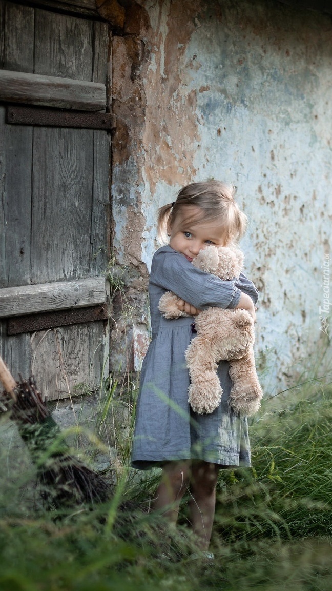 Edytor tapety: Dziewczynka tuląca misia