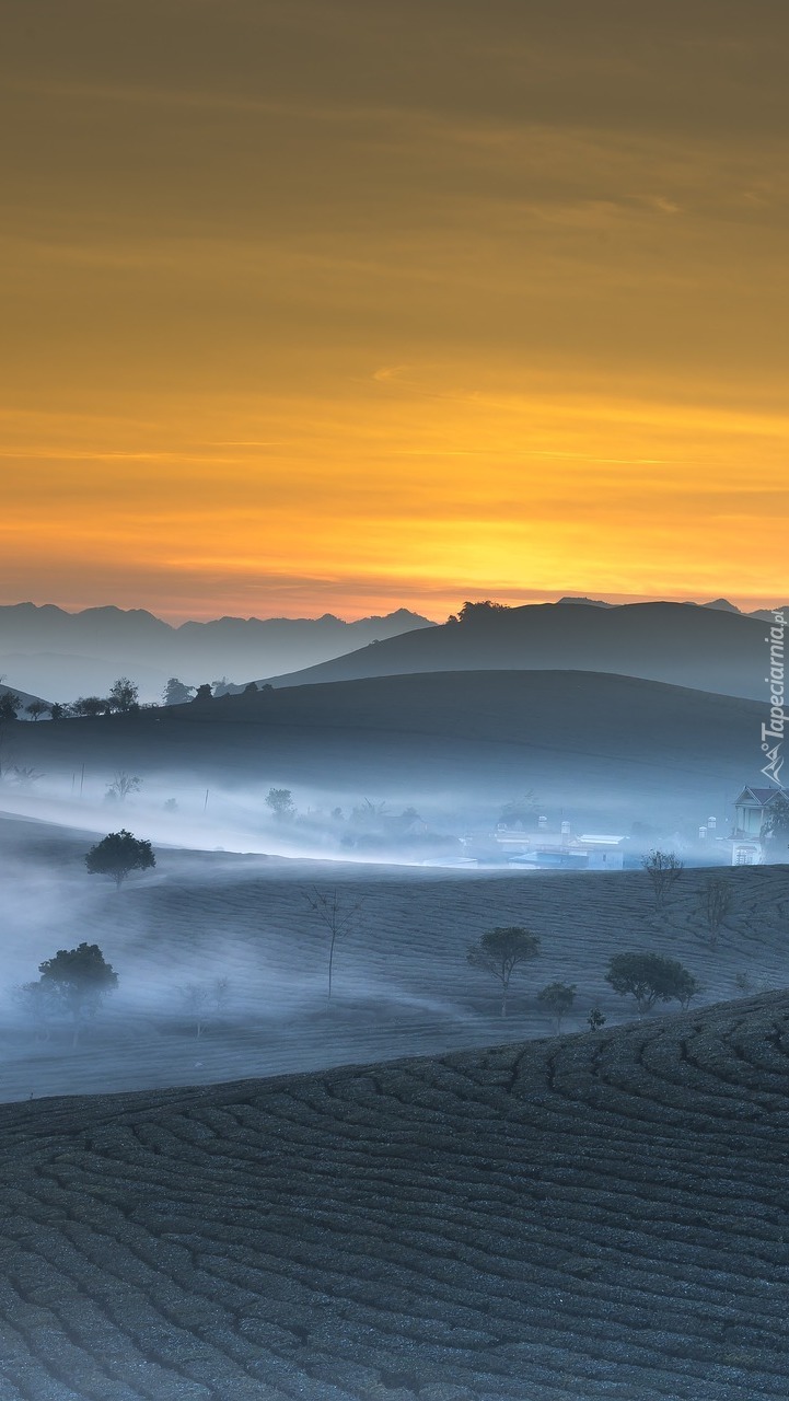 Edytor tapety: Poranna mgła nad polami