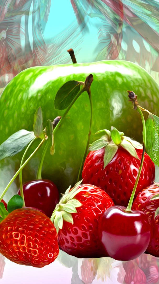 Edytor tapety: Jabłko z truskawkami i wiśniami