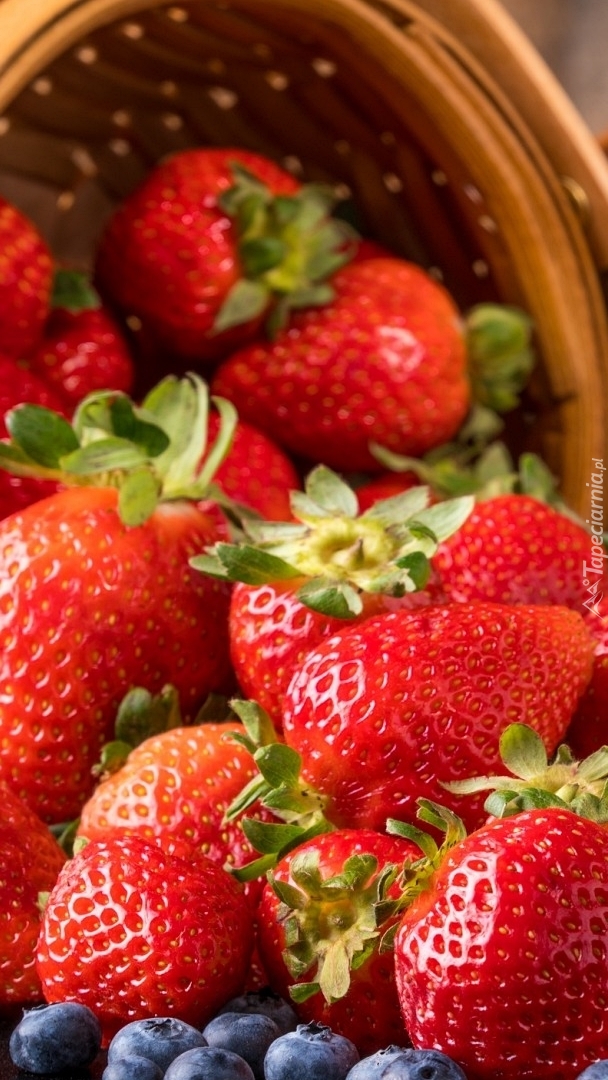 Edytor tapety: Wysypane truskawki z koszyka
