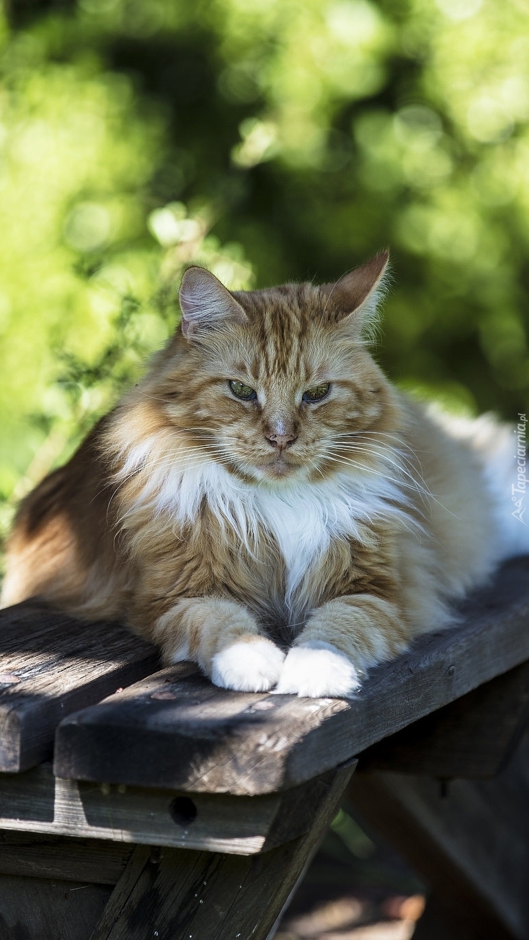 Edytor tapety: Kot długowłosy na ławce