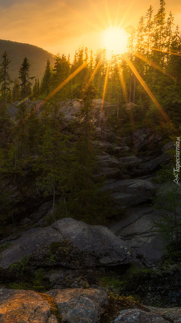 Edytor tapety: Wodospad Rjukandefossen w promieniach słońca