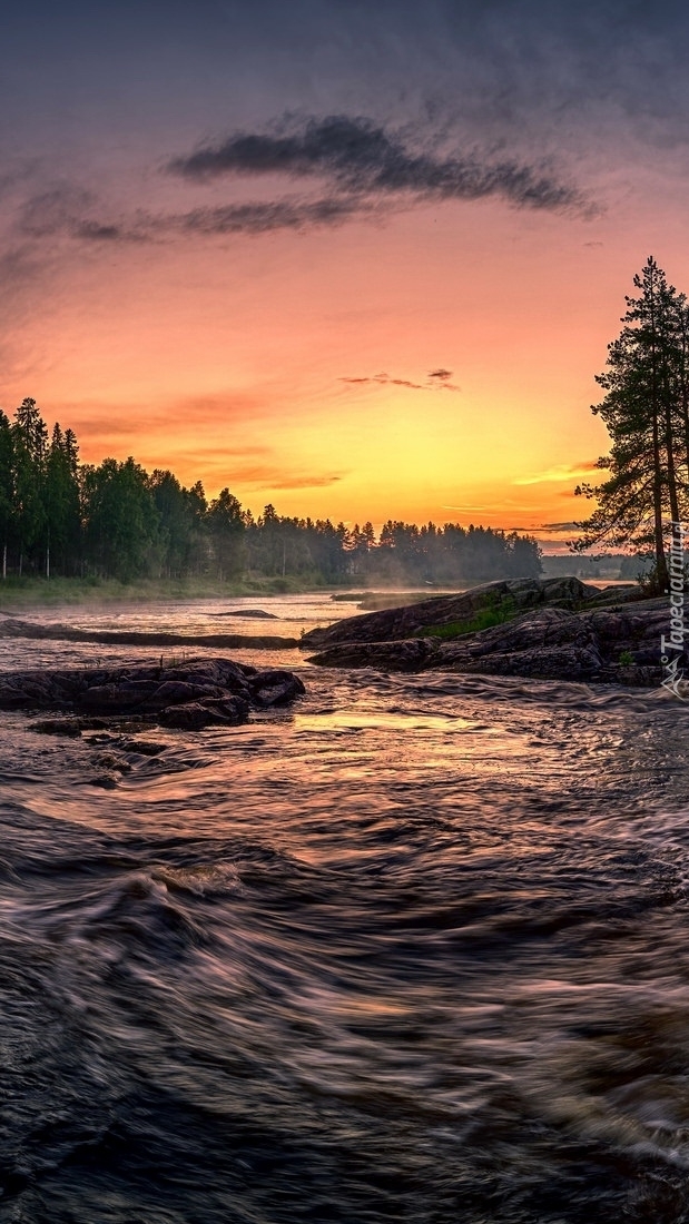 Edytor tapety: Wschód słońca nad rzeką Kiiminkijoki