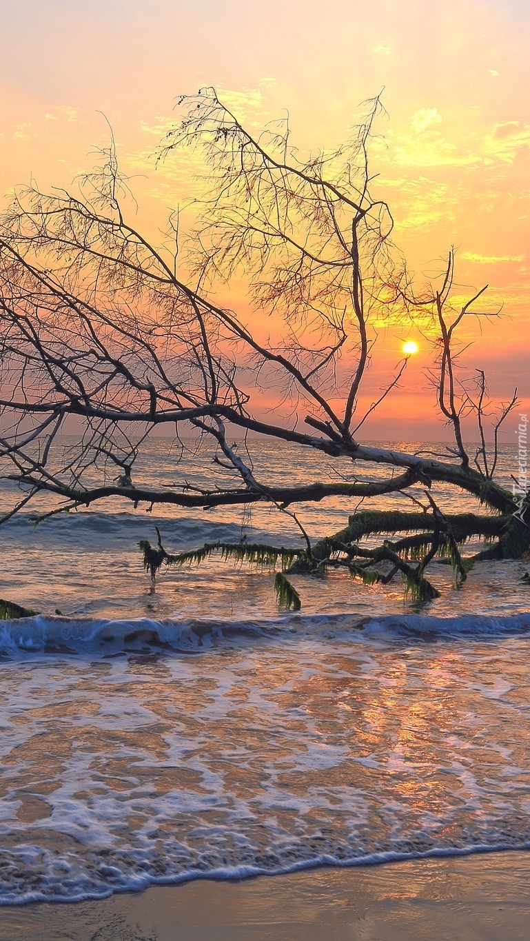 Edytor tapety: Powalone drzewo na brzegu morza