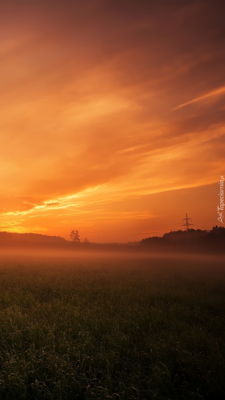 Edytor tapety: Mgła nad łąką o zachodzie słońca