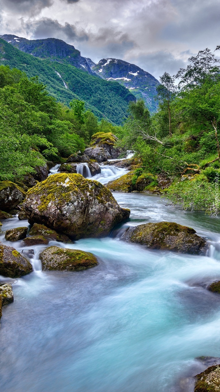Edytor tapety: Omszałe kamienie w górskiej rzece