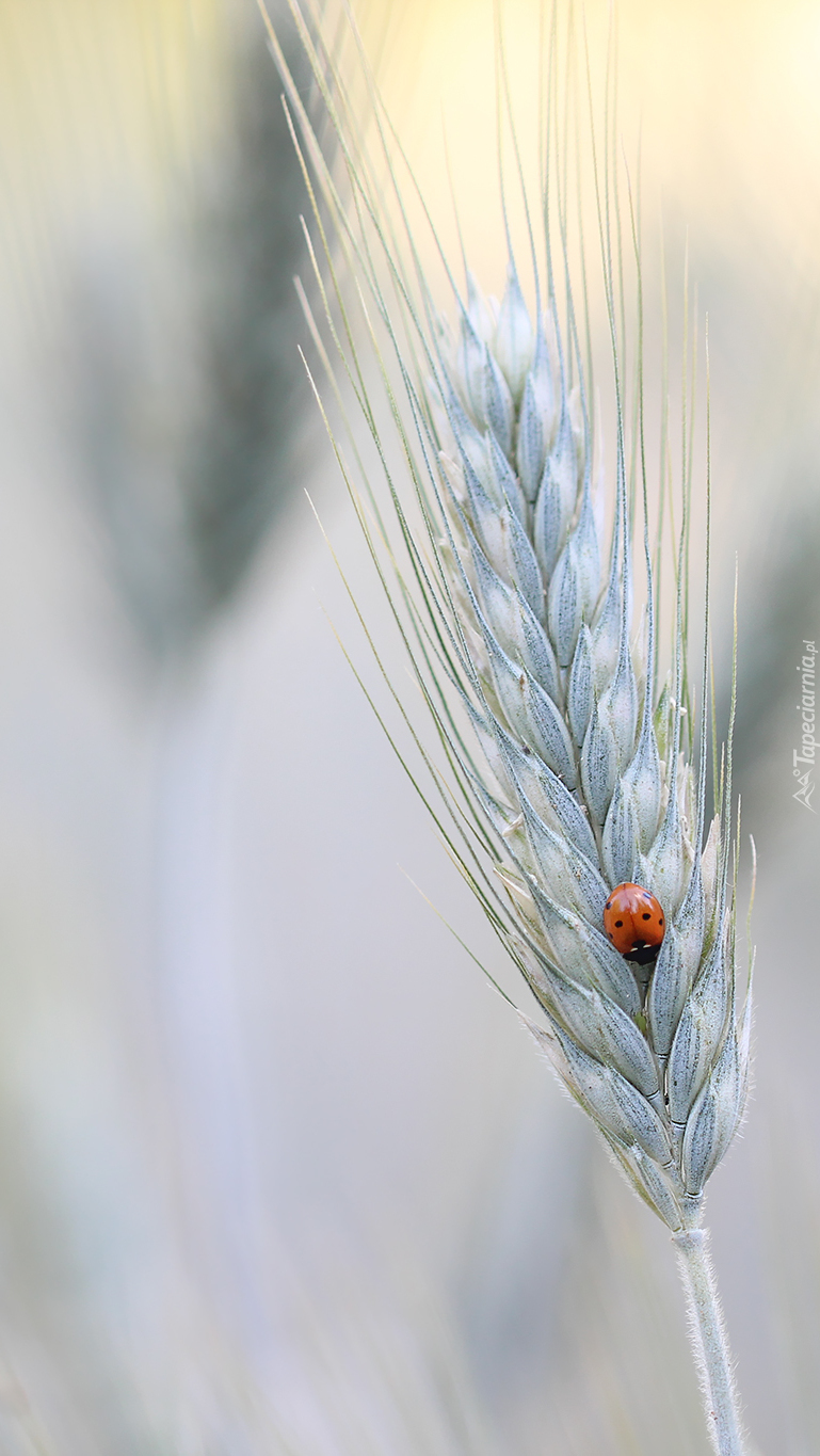 Edytor tapety: Biedronka na kłosie zboża