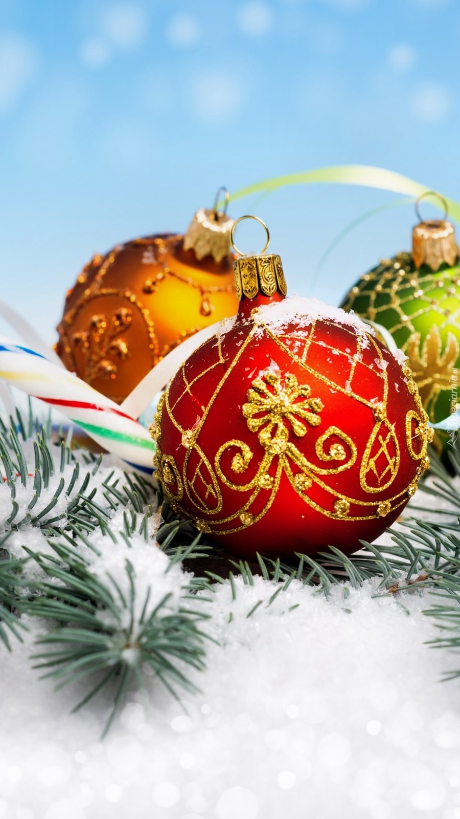Edytor tapety: Bombki na ośnieżonej gałązce