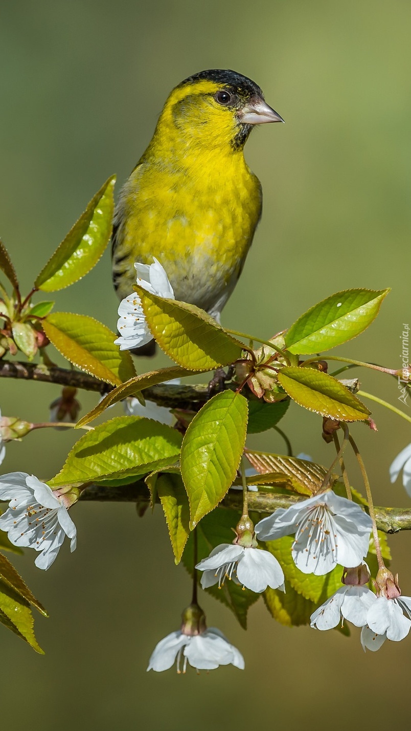 Edytor tapety: Czyżyk na kwitnącej gałązce