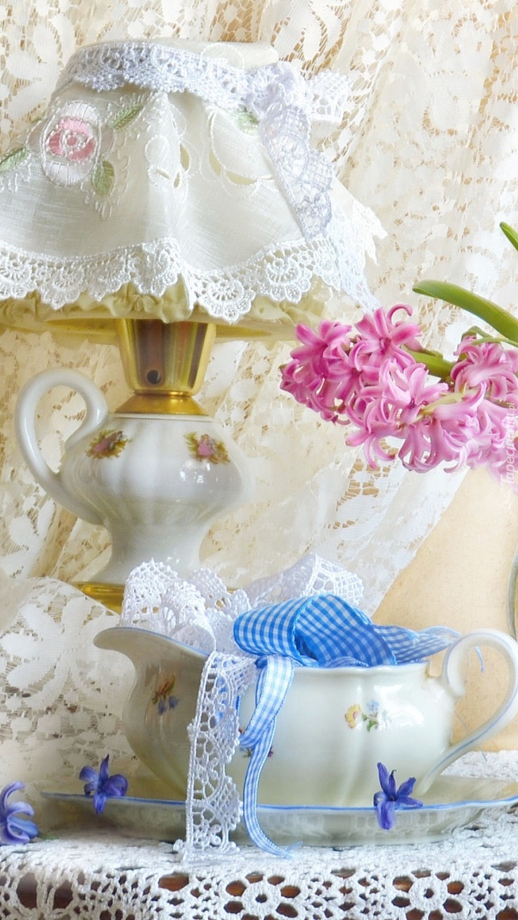 Edytor tapety: Hiacynty obok lampki i sosjerki
