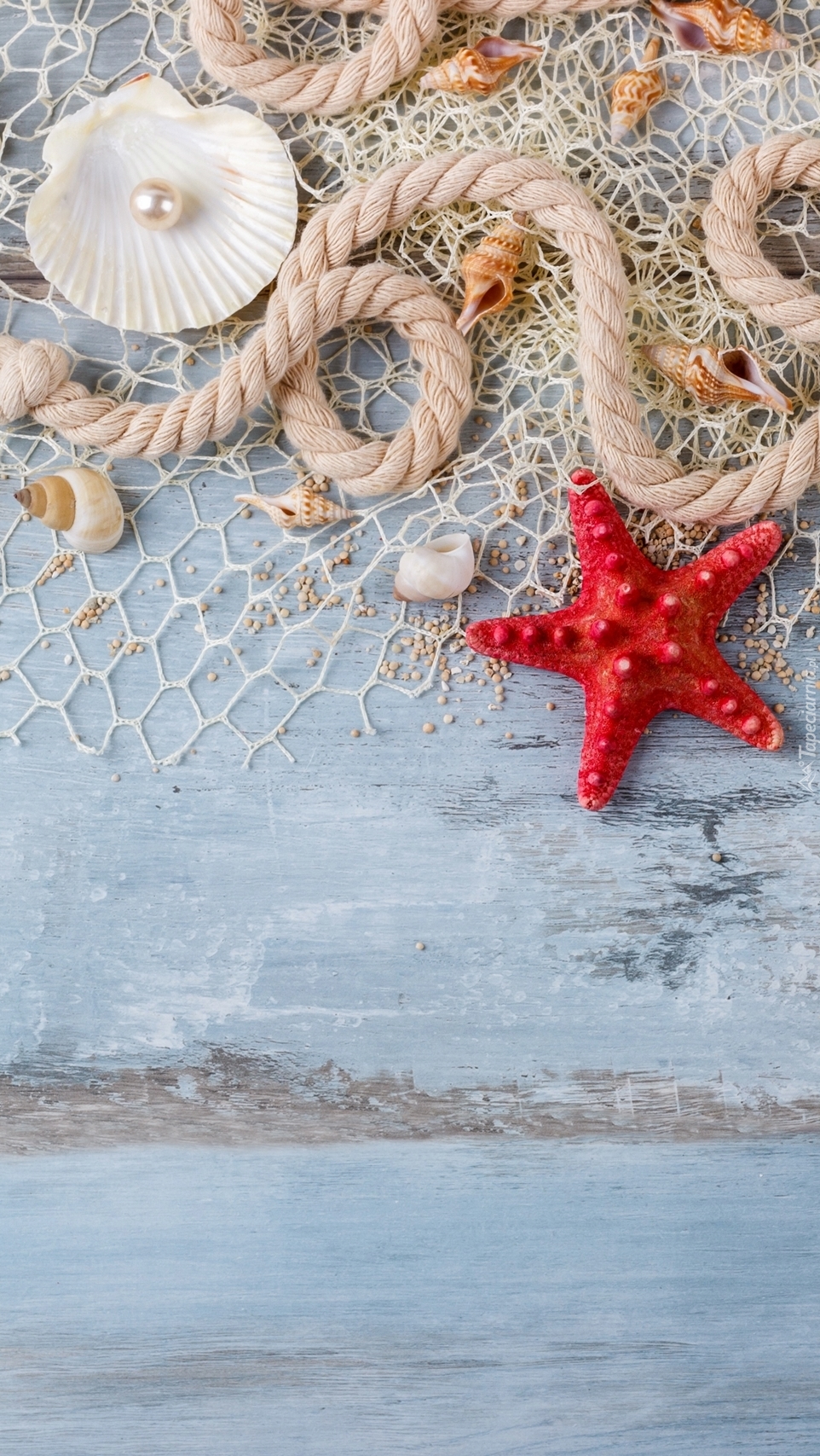 Edytor tapety: Muszelki i czerwona rozgwiazda