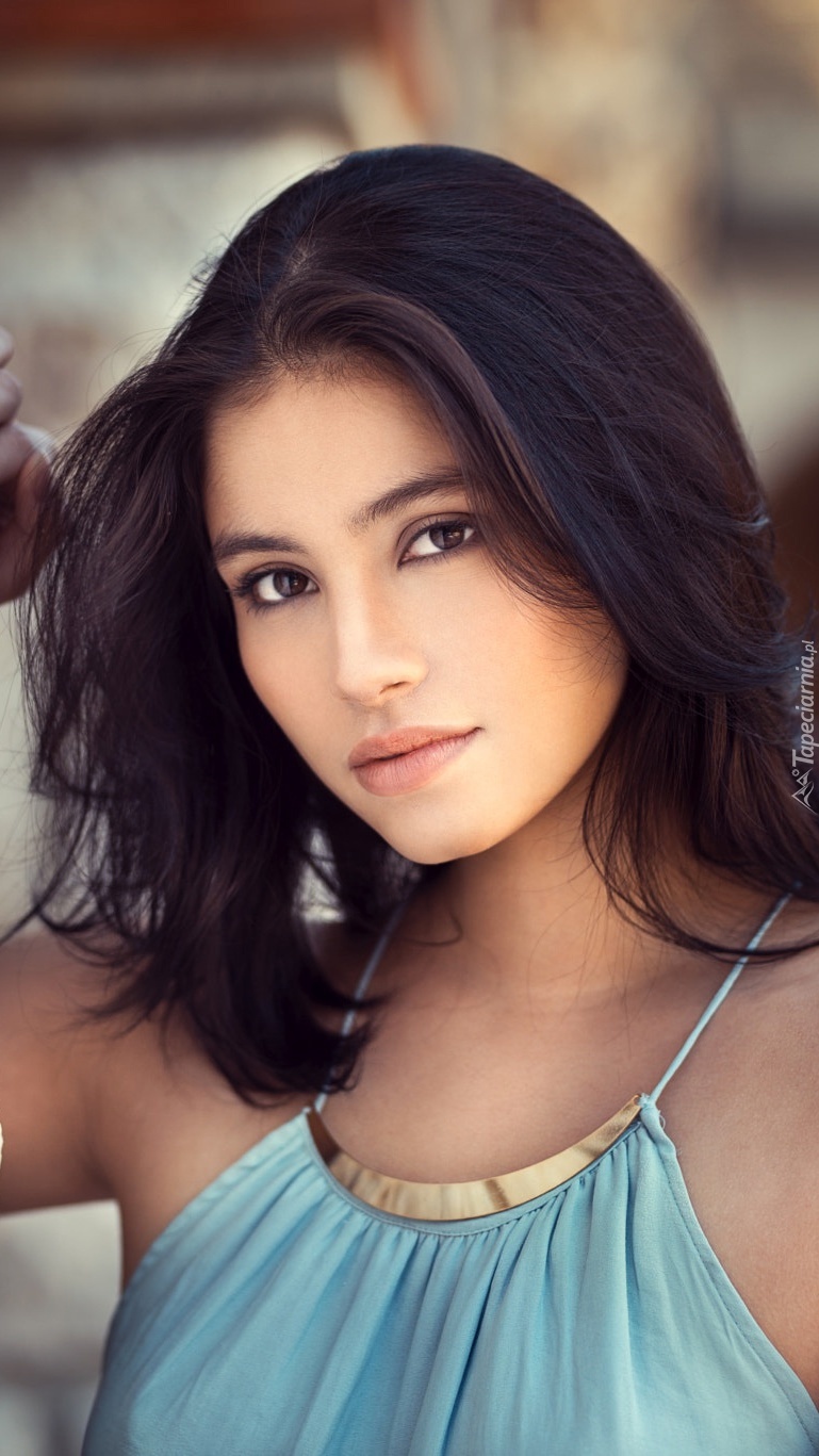 Edytor tapety: Szatynka w niebieskiej bluzce