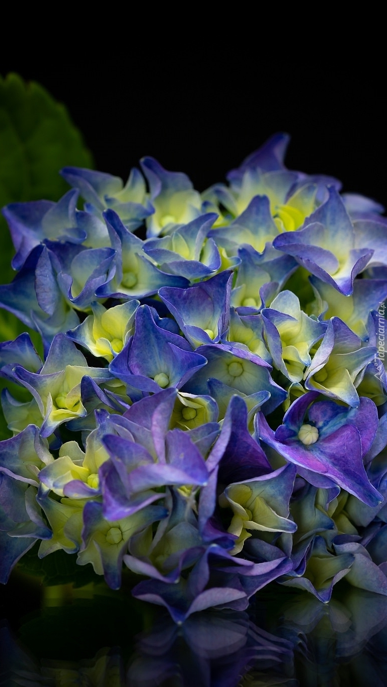 Edytor tapety: Niebieska hortensja na ciemnym tle