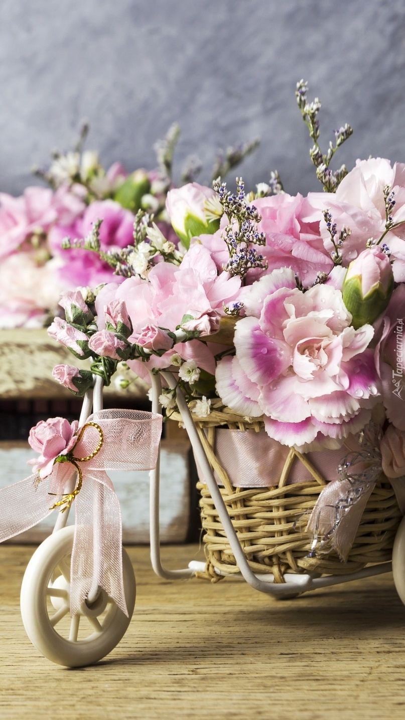 Edytor tapety: Goździki na dekoracyjnym rowerku