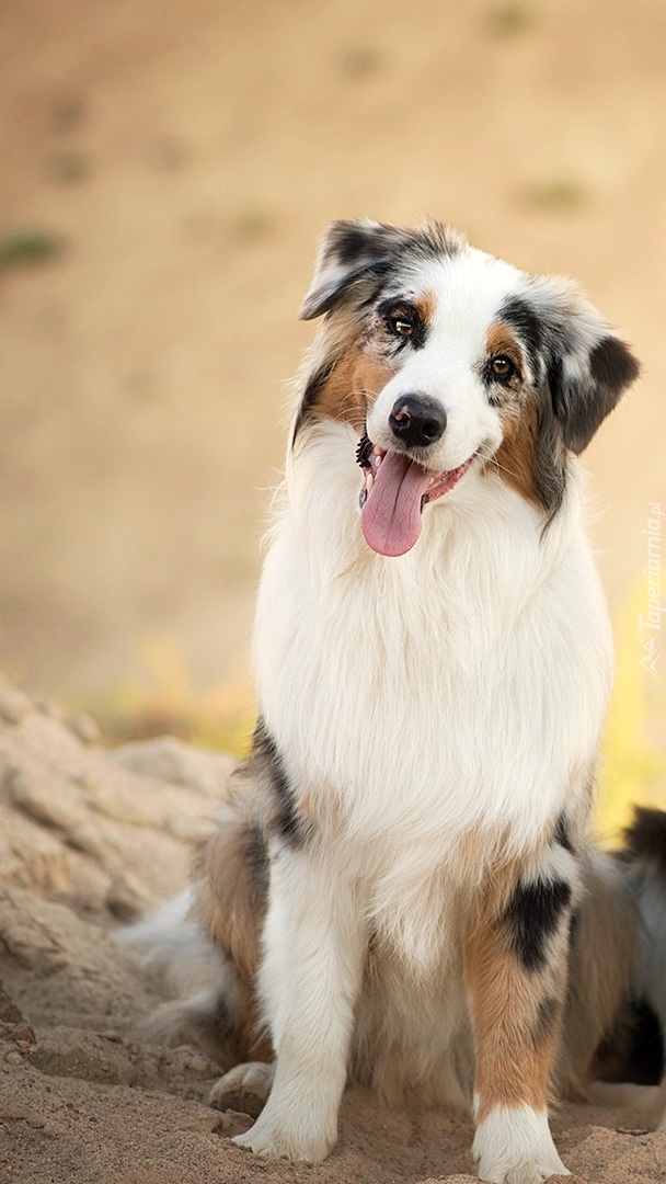 Edytor tapety: Owczarek australijski siedzący na piasku