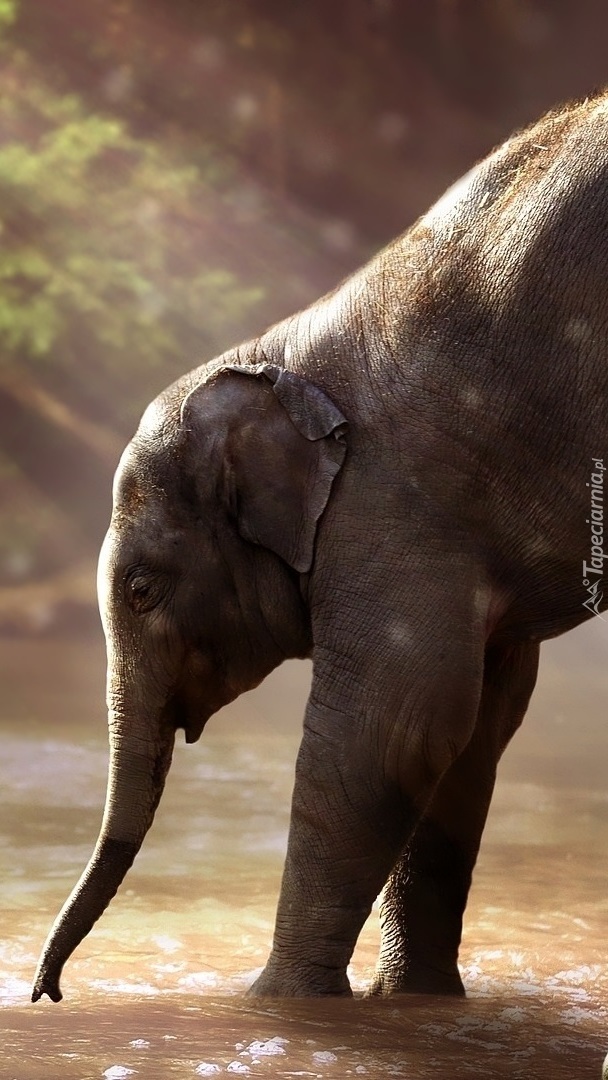 Edytor tapety: Słoniątko w wodzie