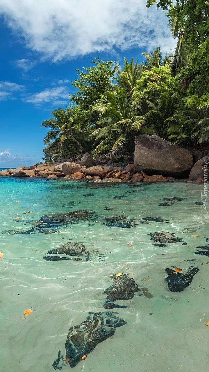 Edytor tapety: Palmy i głazy nad brzegiem morza