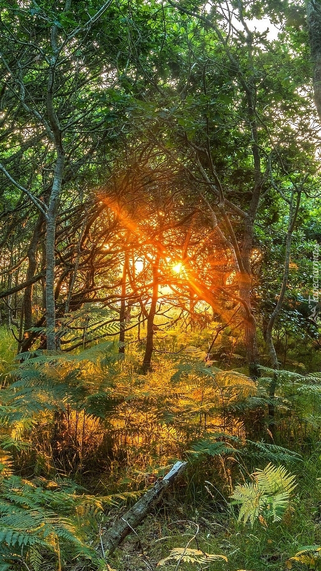 Edytor tapety: Blask słońca między drzewami