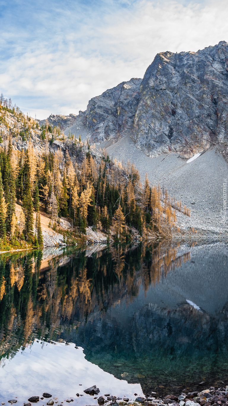 Edytor tapety: Zalesione wzgórza nad jeziorem