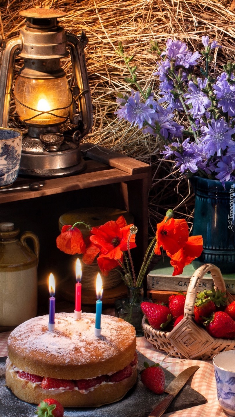 Edytor tapety: Urodzinowy tort i lampa naftowa