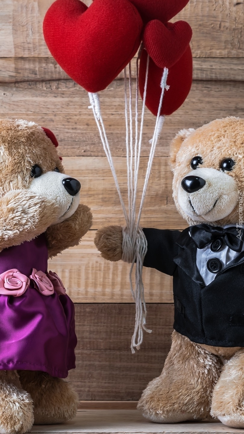 Edytor tapety: Dwa misie i serduszkana sznurku