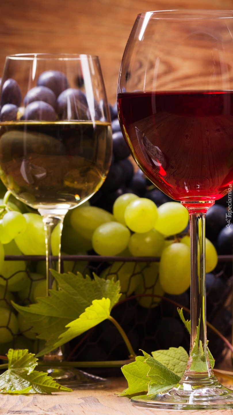 Edytor tapety: Białe i czerwone wino w kieliszkach