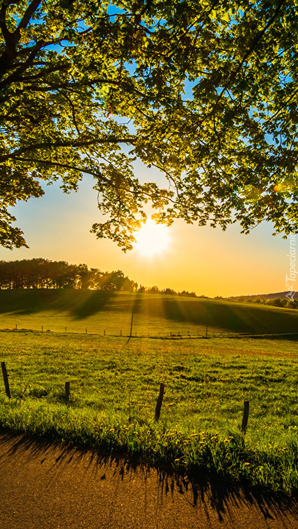 Edytor tapety: Wschód słońca nad łąkami