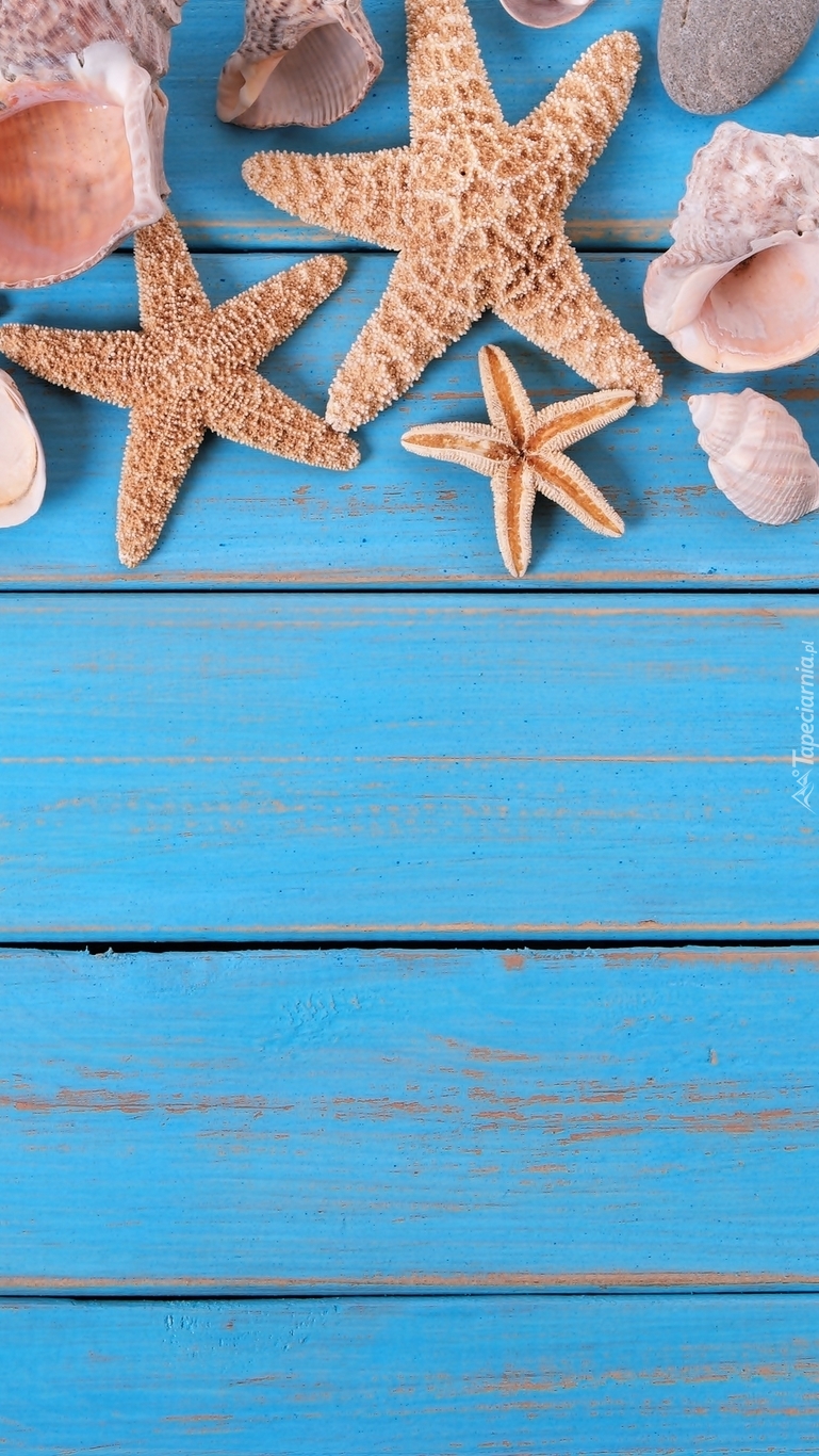 Edytor tapety: Rozgwiazdy i muszelki na deskach