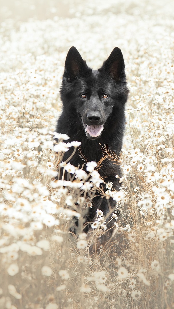 Edytor tapety: Czarny owczarek niemiecki na łące