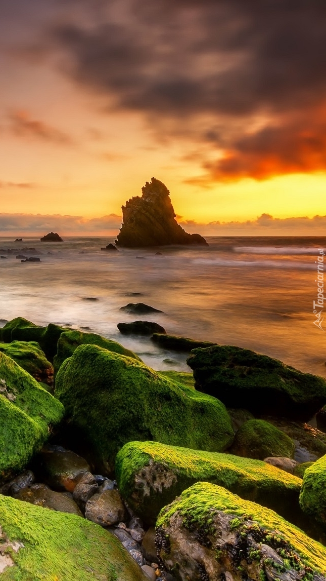 Edytor tapety: Omszałe kamienie na brzegu morza