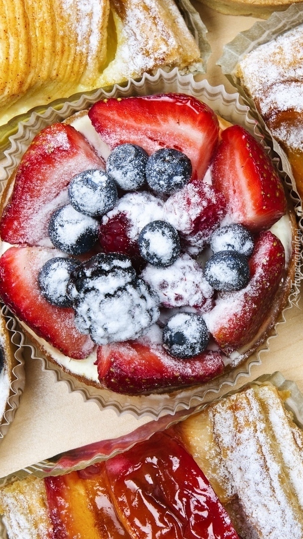 Edytor tapety: Ciastko z truskawkami i borówkami