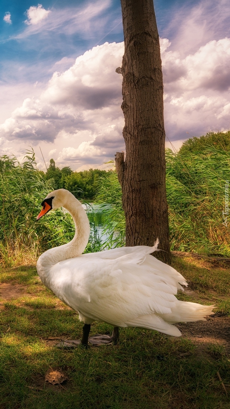 Edytor tapety: Łabędź przy drzewie