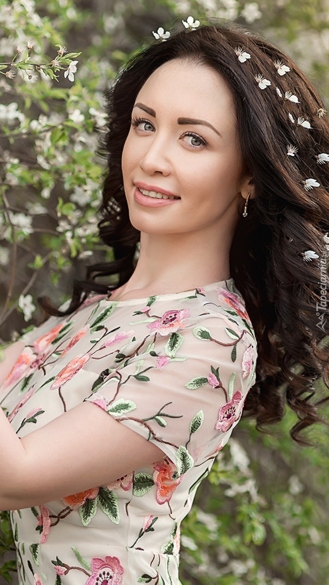 Edytor tapety: Szatynka z kwiatami we włosach