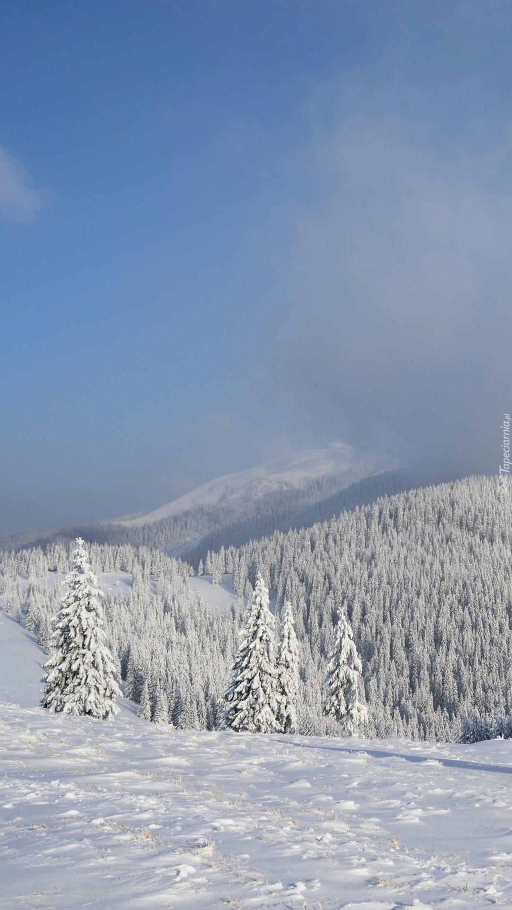 Edytor tapety: Świerkowe wzgórza pokryte śniegiem