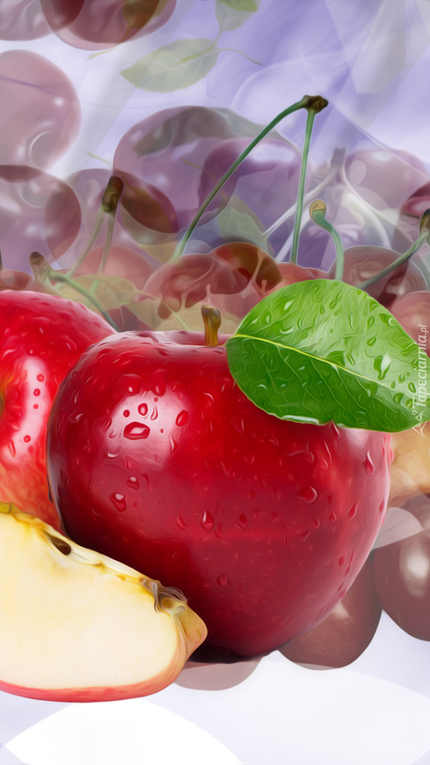 Edytor tapety: Czerwone jabłko z listkiem