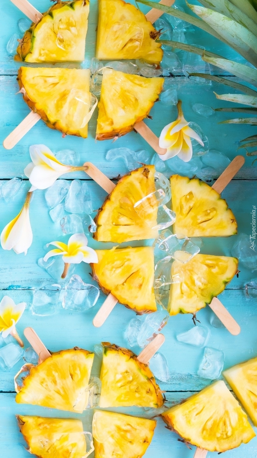 Edytor tapety: Ćwiartki ananasa na deskach