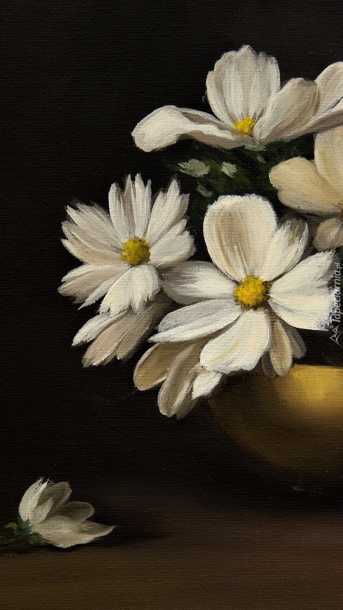 Edytor tapety: Białe kwiatki w złotej misie