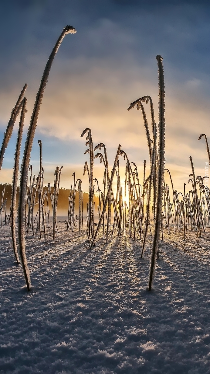 Edytor tapety: Oszronione roślinki o wschodzie słońca