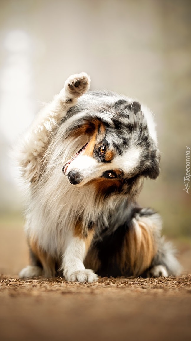 Edytor tapety: Owczarek szetlandzki z łapką w górze