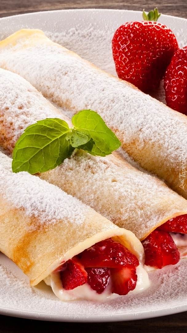 Edytor tapety: Trzy naleśniki z truskawkami